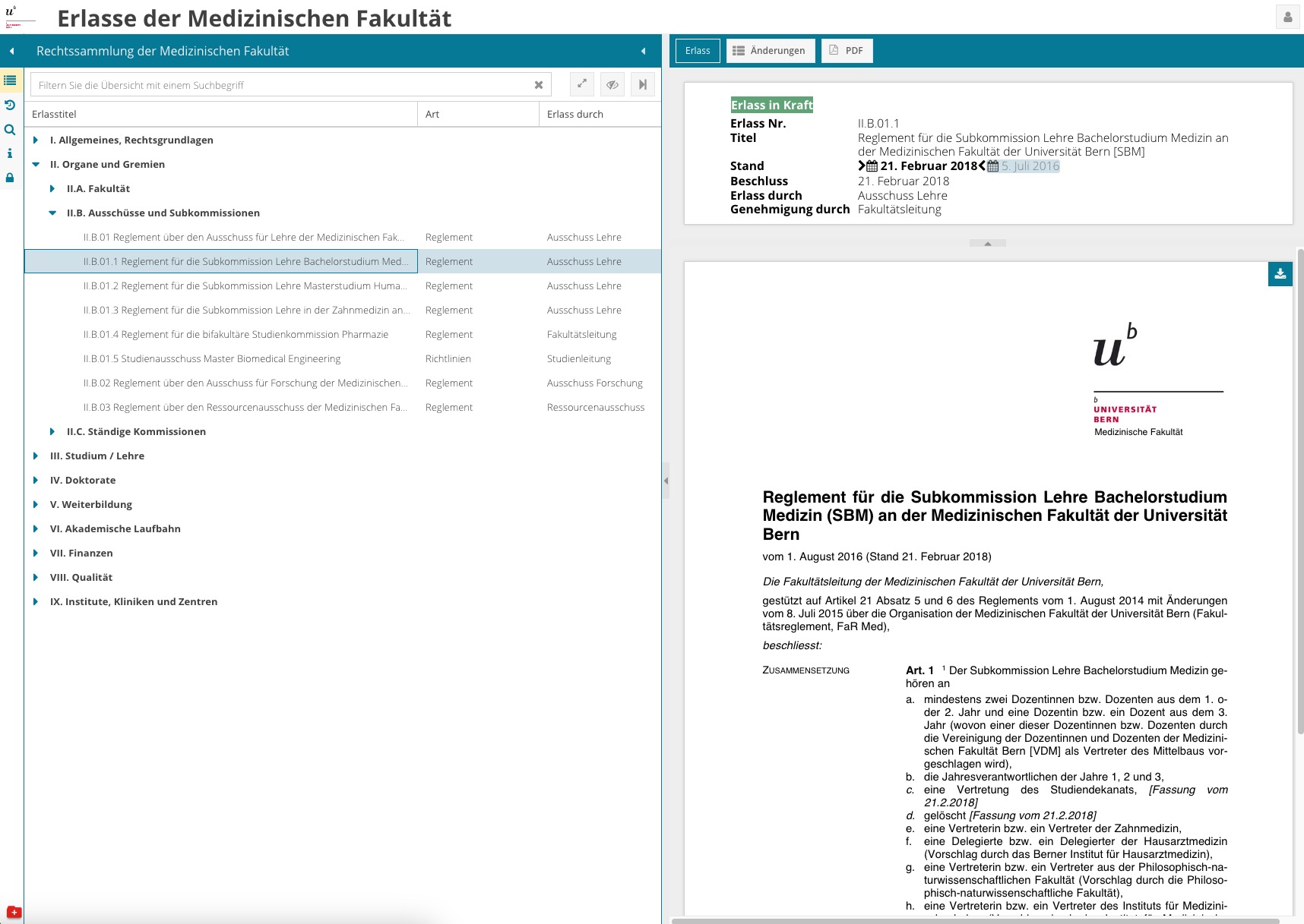 Rechtssammlung der Medizinischen Fakultät der Universität Bern live